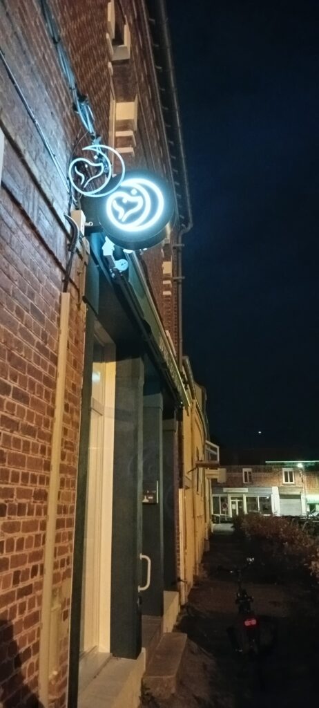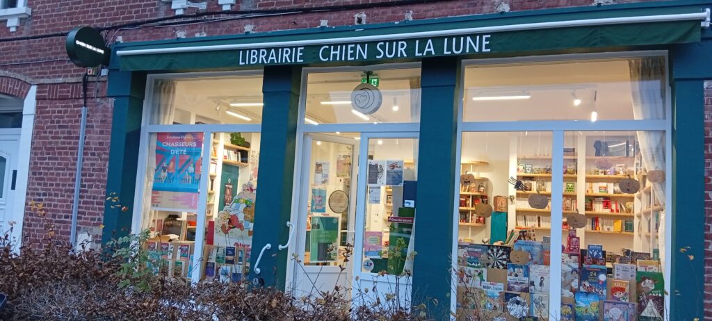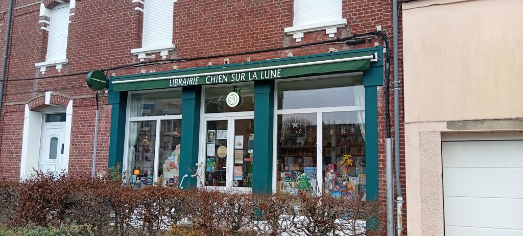 Il y a des gens qui tombent et tout va bien, d’autres qui tombent et ne guérissent jamais. Moi, je suis de ceux qui ne peuvent pas guérir. L’idée un peu folle de tout reprendre à zéro et de recommencer mon parcours professionnel m’a obsédé — et vous a offert, je l’espère, une belle librairie dans notre petite ville. Trois ans de gestation, de travaux, de hauts et de bas, et le 3 décembre 2024, à 8 h 30, au 8 rue de Tavernes, est né « Chien Sur La Lune ».